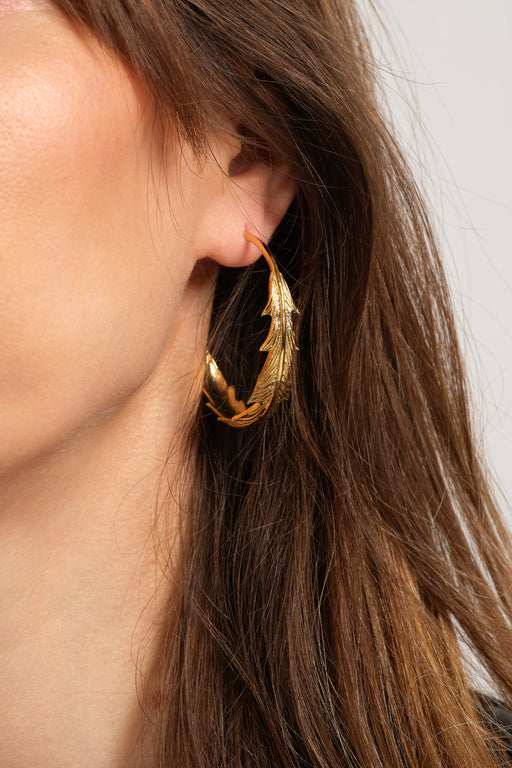 View full detailsThese beautifully crafted 45mm hoops feature delicate leaf detailing, adding a subtle yet stylish touch to your everyday or evening look. Elegant a...