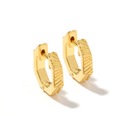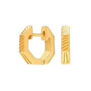 Gold Plated Sterling Silver Hexagonal Grooved Huggie Hoop Earrings
