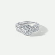 Our Fergie ring is crafted in 9ct white gold and adorned with a total of 1 carat ethically sourced lab-grown diamonds. The Halo design is complemented by a split shank divided into three rows, each set with brilliant white diamonds which adds dept and dimension to the ring, creating a mesmerizing display of brilliance and beauty.