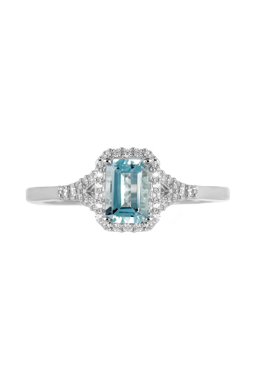 The Fine CollectiveA gorgeous 9 carat white gold gemstone ring set with an aquamarine centre piece and embellished with 0.12ct of sparkling, natural diamonds.