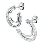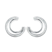 Sterling Silver Crystal Double Crescent Stud Earrings