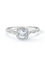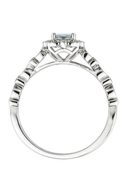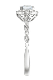 Exquisitely crafted in 9 carat white gold, this vintage inspired ring from the Arrosa collection is set with an aquamarine centre stone and embellished with pavé set diamonds. The perfect choice for meaningful gift or a unique engagement ring.