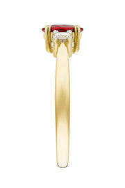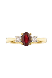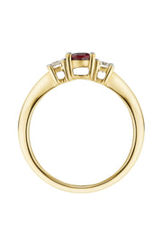 9ct Yellow Gold 6x4 Oval Treated Ruby and 0.10ct Diamond Three Stone Ring