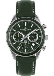The brand-new Eco Power - Solar Collection from Jacques Lemans perfectly combines the use of latest solar technology, eco-friendly materials as well as classic design. The chronograph has got a stop watch, minute and second counter and a power reserve of up to 180 days. Paired with the green strap made of vegan apple skin, the dial is made of beautiful walnut, a special wood grain. The perfect companion for both business and leisure.