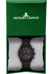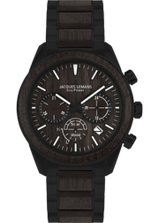 The brand-new Eco Power - Solar Collection from Jacques Lemans perfectly combines the use of latest solar technology, eco-friendly materials as well as classic design. The chronograph has got a stop watch, minute and second counter and a power reserve of up to 180 days. Paired with the striking strap made of black vegan apple skin inlays, the dial is made of beautiful walnut, a special wood grain. The perfect companion for both business and leisure.