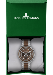 The brand-new Eco Power - Solar Collection from Jacques Lemans perfectly combines the use of latest solar technology, eco-friendly materials as well as classic design. The chronograph has got a stop watch, minute and second counter and a power reserve of up to 180 days. Paired with the strap made of vegan apple skin inlays, the dial is made of beautiful walnut, a special wood grain. The perfect companion for both business and leisure.
