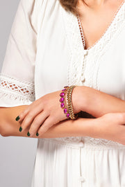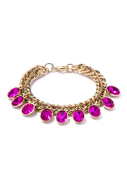 This charming bracelet features an array of vibrant pink crystal charms, perfect for adding a pop of colour to your outfit. Length is 7 inches. Presented in a gift box.