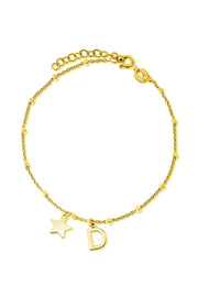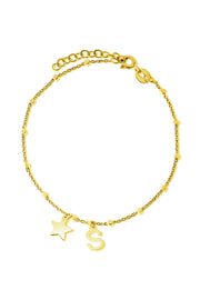 Gold Plated Sterling Silver Initial Star Charm Bracelet