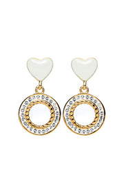 Gold Plated Sterling Silver White Enamel & Crystal Heart Stud Earrings