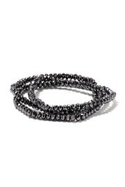 Gun-Grey Crystal Beads Trio Stretch Bracelet