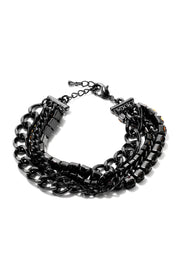 Designed for versatility, this bracelet adds a bold statement to any outfit. Featuring a collective of chains in a gun-grey tone,creating a stylish, layered look. Length is 7 plus 1.25 inches for comfortable wear. Presented in a gift box.