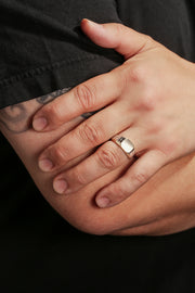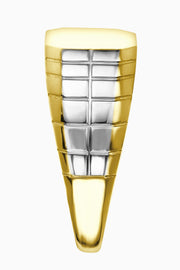 A fresh take on a classic, this 9 carat white and yellow gold signet ring features a polished square centre piece and ridged shoulders.