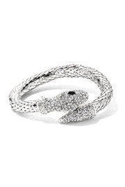 A stunning show piece that combines elegance with a touch of edginess. This beautifully designed bangle features a stunning snake motif, adorned with shimmering clear crystals that catch the light from every angle. Presented in a gift box.
