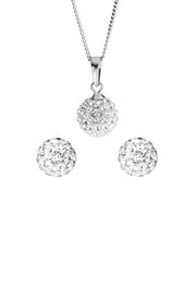 Sterling Silver Crystal 9.5mm Ball Pendant and 7.5mm Stud Earrings Set