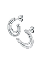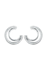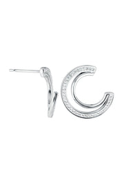 Sterling Silver Crystal Double Crescent Stud Earrings