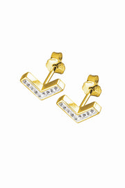 Fun and stylish, upgrade your everyday jewellery look with these "V" stud earrings. Featuring sparkling white crystals they are crafted in precious gold plated sterling silver. Super cute with any outfit! Presented in an Evoke gift box.