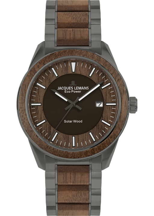 View full detailsEco Power Solar Wood Stainless Steel Grey Men's Bracelet Watch