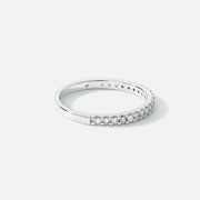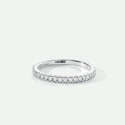 Our Odette ring is wonderfully crafted in 9 carat white gold and set with a row of claw set sparkling lab grown diamonds. This elegant piece can be worn alone or as a matching band to one of our beautiful engagement rings.
